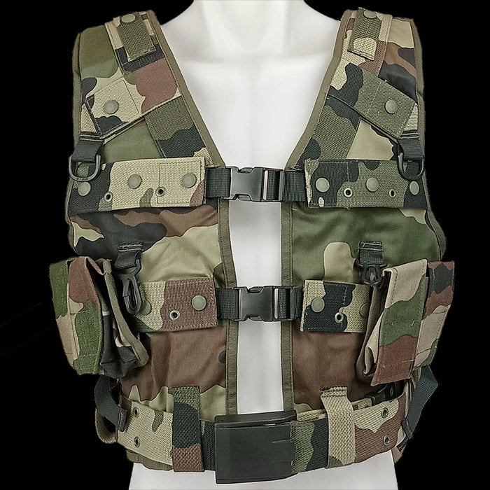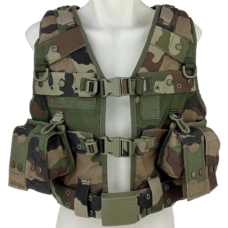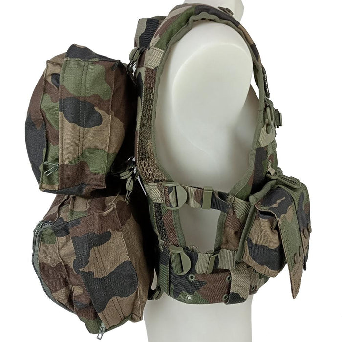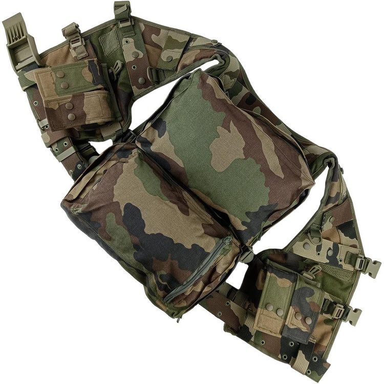 This genuine French Army assault vest is designed around a modular strap system so it's compatible with a wide range of equipment. Originally issued in the early 2000's, these vests were replaced with carrier vests. The Camouflage Europe Centrale (or French CE) is a 4-colour camouflage pattern used by the French Army.