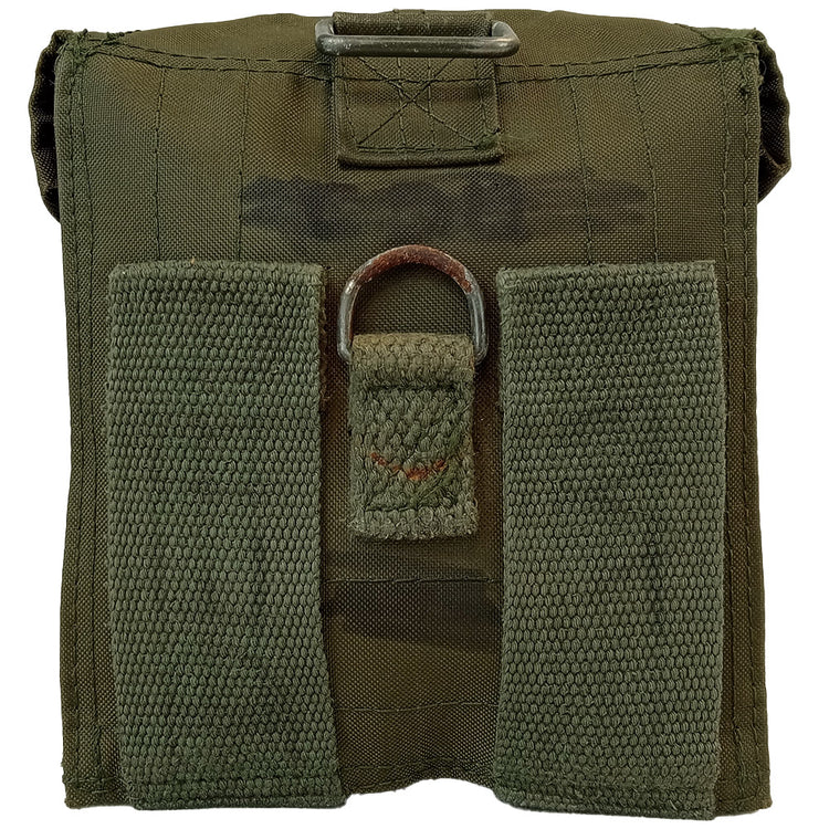 Part of the F1 system during the 1970's, these magazine pouches were issued with the French FAMAS rifle. Under the hook and loop flap are three (see above note) compartments designed for three FAMAS magazines. The attachment styles to the back should accommodate a belt up to 7cm wide but also have two rings for vertical placement options. Rugged nylon construction has enabled these handy pouches to continue beyond military use (when the FAMAS was a standard issue rifle in France), so these handy pouches await new life, repurposed however you see fit!