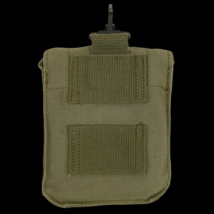 More olive drab French pouches you say? Here's a first aid pouch with plastic box insert. Use to store field dressings and boo-boo items but a reasonable size to accommodate other small, useful items when you're out and about.