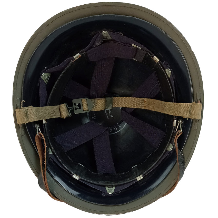 Constructed from solid steel with a canvas chin strap and steel hook. Like the M1, the M51 has a rolled edge, though the visor doesn't extend as far. This French helmet is a must have for a military collection.