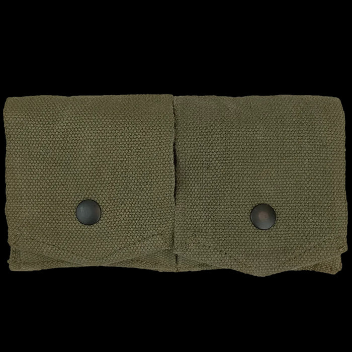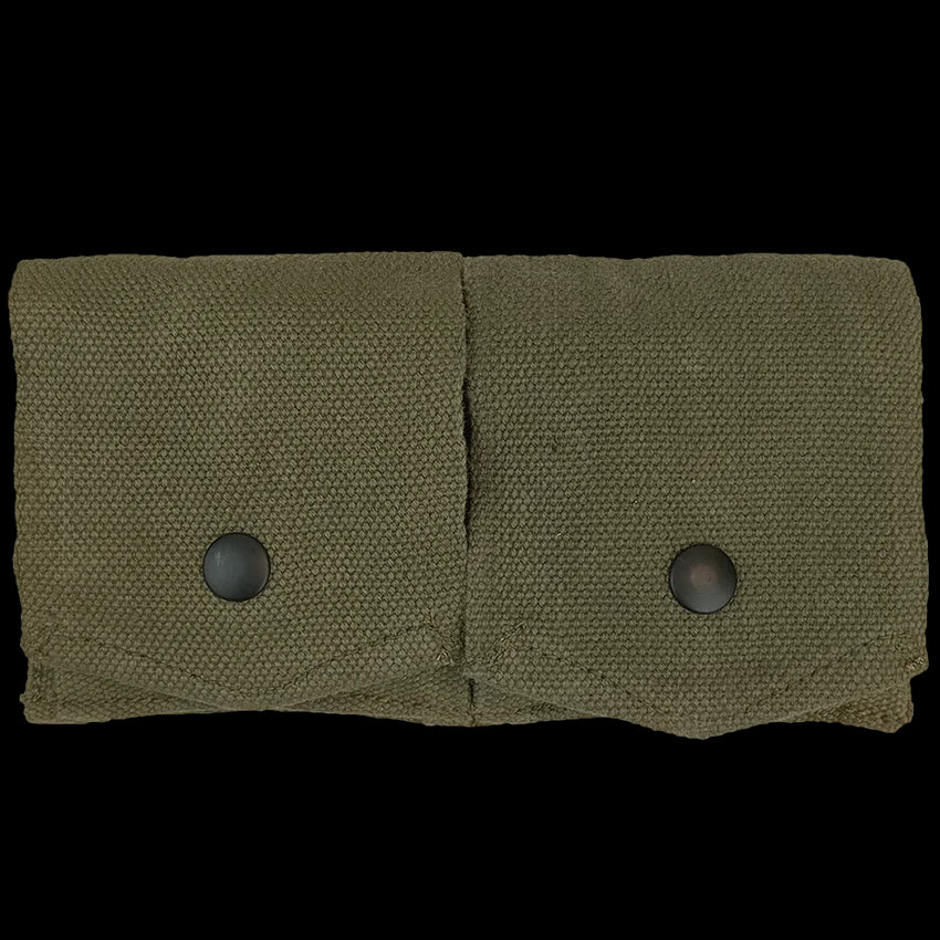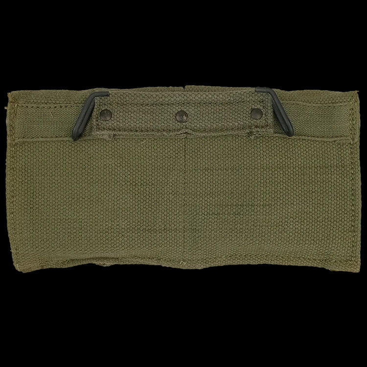From the French Army come these pouches that were designed to accommodate two 10 round MAS-49/56 magazines. In cotton canvas, these were mostly in use around the 1954-1960's Indo-China and Algerian conflicts.