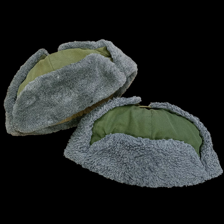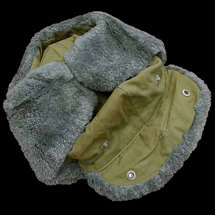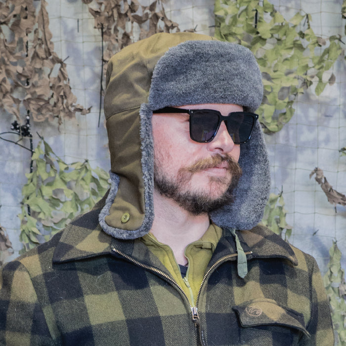 The Czech Army winter hat features an olive green exterior with a soft grey faux fur trim, combining military practicality with a classic look. Designed for cold weather, it offers excellent warmth and comfort. The ear flaps can be worn up for a streamlined style or down for added protection against wind and cold. Functional and stylish, thanks Czech Army.