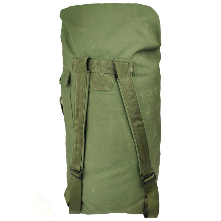 This is a seriously heavy duty duffel bag. Genuine US army gear built tough for military life. Its shoulder straps and carrying handle make it easy to lug around the huge amount of gear you can stuff in this mean green pack. The opening can be secured shut by threading the metal loop through the eyelets and attaching back to the clasp, an innovative and easy to access design.