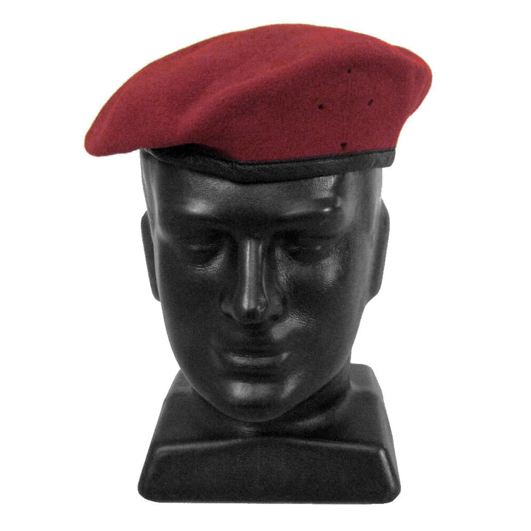 The German Army (Deutsches Heer) issues different coloured berets to different branches of their military. Red, burgundy, and blue represent the Combat support troops, Airborne units, and Medics. Made from felt wool and leather for a high quality look and feel. A nice piece for the collector or reenactments and fancy dress.