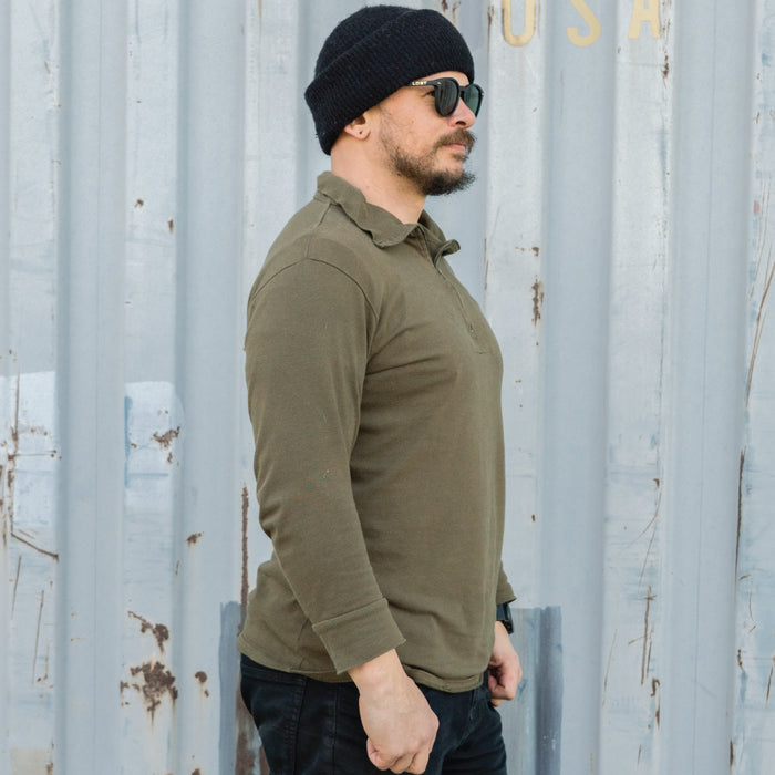 You'd be on the right path if you're getting cold weather clothing from a country that's very experienced with below freezing temps—Germany. This cotton tricot shirt is one of the base layers the Bundeswehr issue to their troops. It features a high collar for retaining heat close to the body. This collar can be zipped down for unleashing any unbridled chest hair you may want to reveal to your fellow companions. Or perhaps you just wanted to 'cool off'.