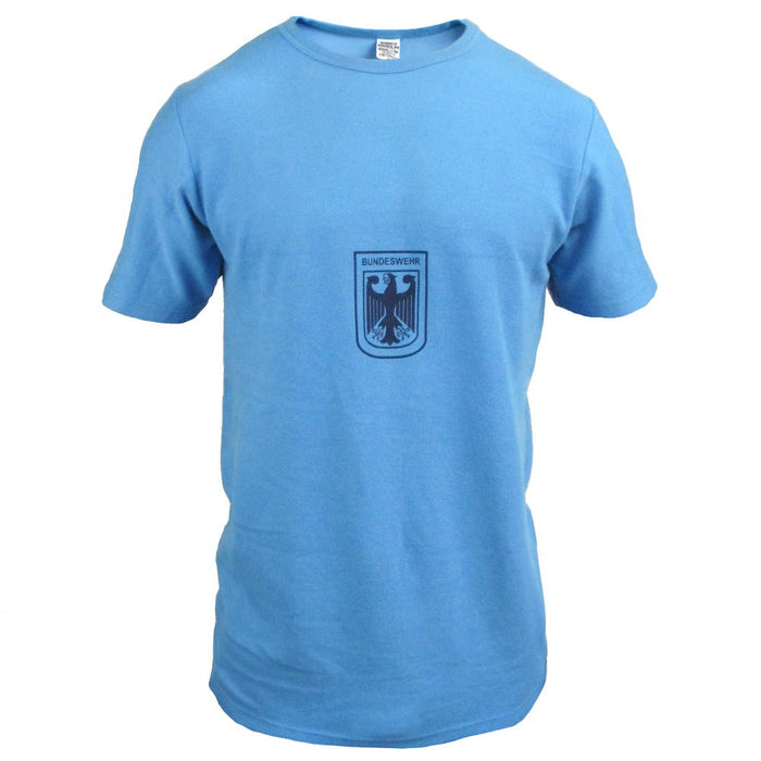 This is a sports shirt of the German Army (Bundeswehr). Troops would wear this during physical and recreational activities. The front of the shirt features the coat of arms of Germany, the Bundesadler (Federal Eagle). Created from a durable poly/cotton blend to handle some friendly sporting competition. One for the summer sportsman or collector.