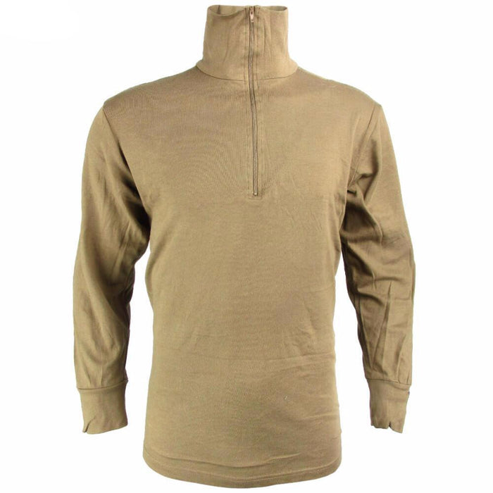 You'd be on the right path if you're getting cold weather clothing from a country that's very experienced with below freezing temps—Germany. This cotton tricot shirt is one of the base layers the Bundeswehr issue to their troops. It features a high collar for retaining heat close to the body. This collar can be zipped down for unleashing any unbridled chest hair you may want to reveal to your fellow companions. Or perhaps you just wanted to 'cool off'.