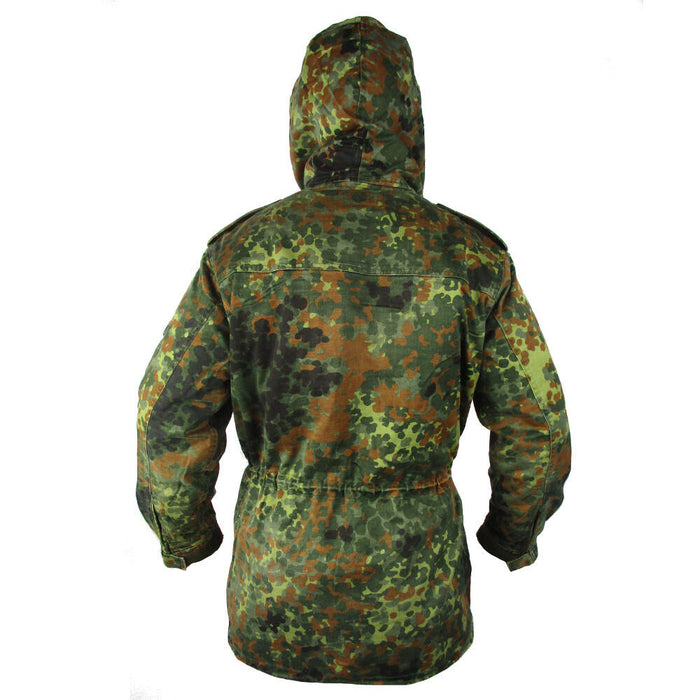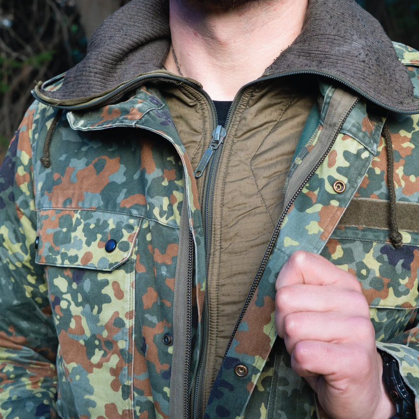 Widely loved flecktarn camo pattern on a great quality parka. Equipped with a removable insert liner and an array of pockets. The perfect jacket for hunters and campers while out on cold weather adventures. Removing the liner makes for a great over jacket that brings style and comfort to the table.