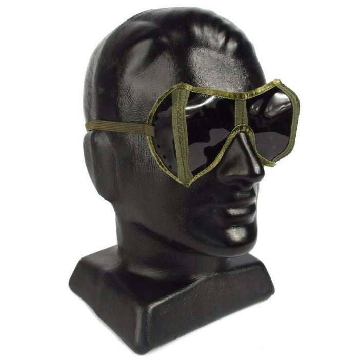 An adjustable elastic strap allows the goggles to fit over most sized heads while the soft velvet frame sits comfortably around your eyes. The dark tinted lenses are ideal for reducing bright sunlight. Whether you're needing pair of goggles to keep the dust out, you're a collector, or you like getting weird looks in public, these are the goggles for you!
