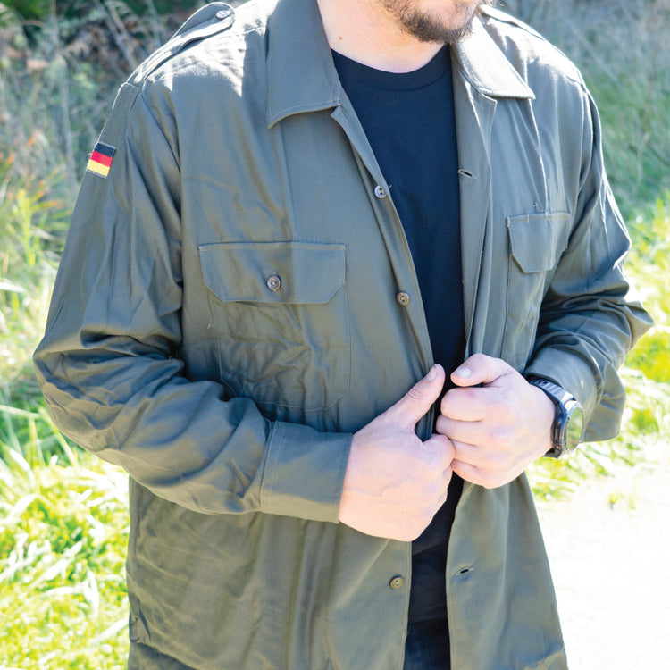 These German army combat shirts are always a popular pick. They blend style and quality all into one fantastic genuine issue shirt. Featuring two large chest pockets, adjustable cuffs, solid collar and German flag badges on each arms. Perfect as everyday wear, a paintball/airsoft shirt and reenactment gear.