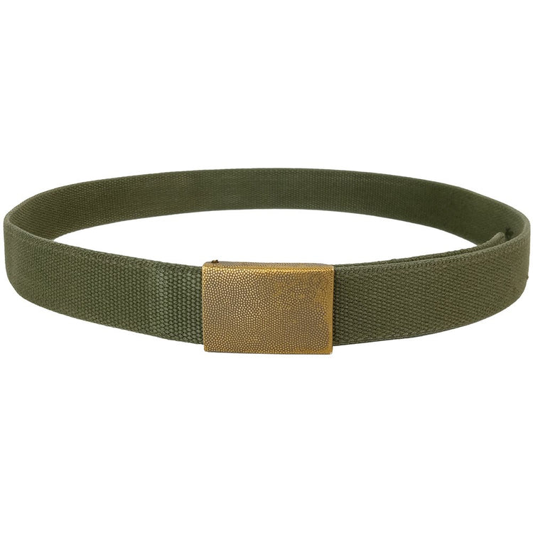 A German army belt - everything a belt needs and nothing extra. Woven olive drab strap and brass buckle, these are very similar to our other OD German belt but are about 3cm wide and even simpler. Strong and plain, job done.