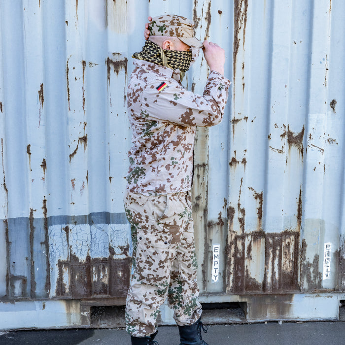 The German Army's choice of camouflage in arid/desert regions is the 3 colour Tropentarn pattern. The official name is drei Farben Tarndruck der Bundeswehr (three color camouflage of the Bundeswehr). Based on the established Flecktarn pattern, the Tropentarn is another popular camouflage pattern from the German army. These Tropentarn pattern trousers have a high cotton content, making them extra comfortable.