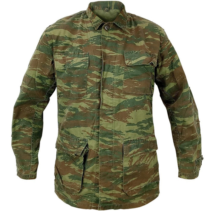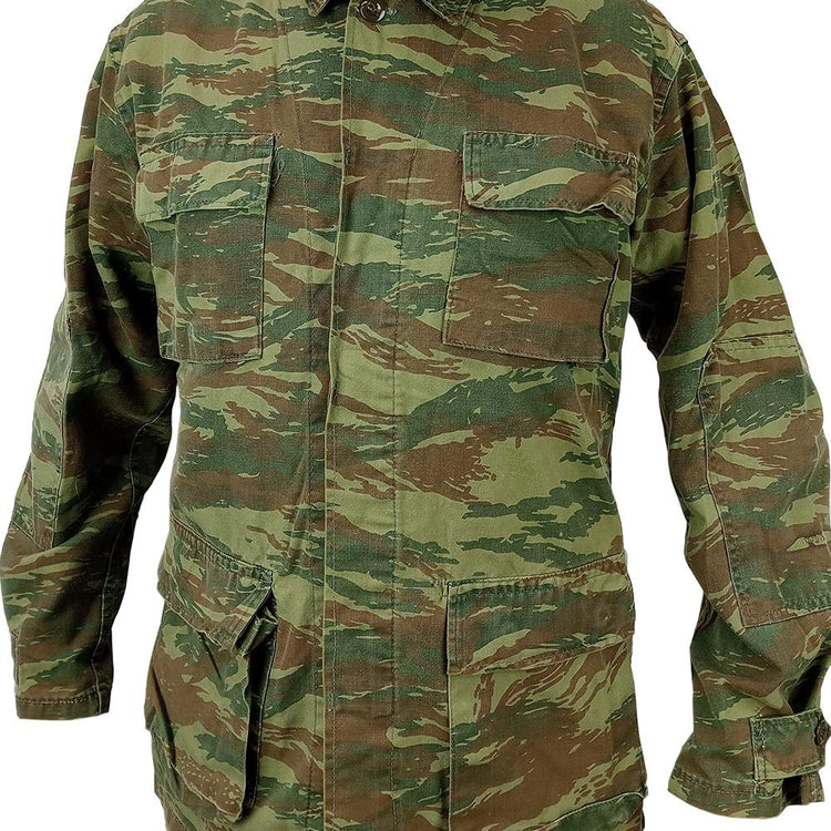 These shirts are what the Hellenic Armed Forces largely issued its conventional branches from the 1980's onwards. Covered in what has been colloquially coined 'Greek lizard camo.' It remains the most 'unique' Greek camo still in service as several other branches utilize copies of Multicam, MARPAT & UCP.