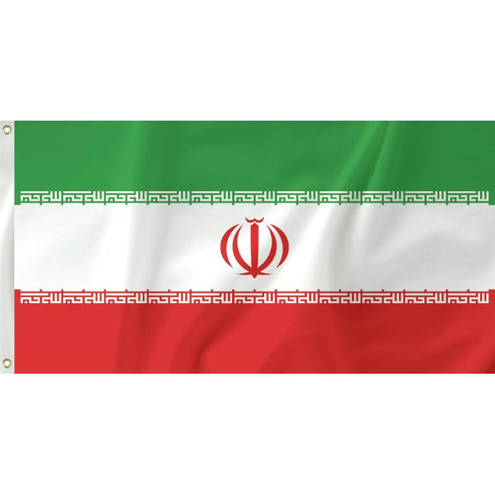 Iran adopted their current version of their flag in 1980 after the Iranian revolution. This resulted in the end of a 2,500 year old rule by Persian monarchy and replaced by an Islamic Republic. The middle symbol stands for 'Allah' and the pattern on the red and green bands is actually Kufic script for takbir - 'God is the greatest.'