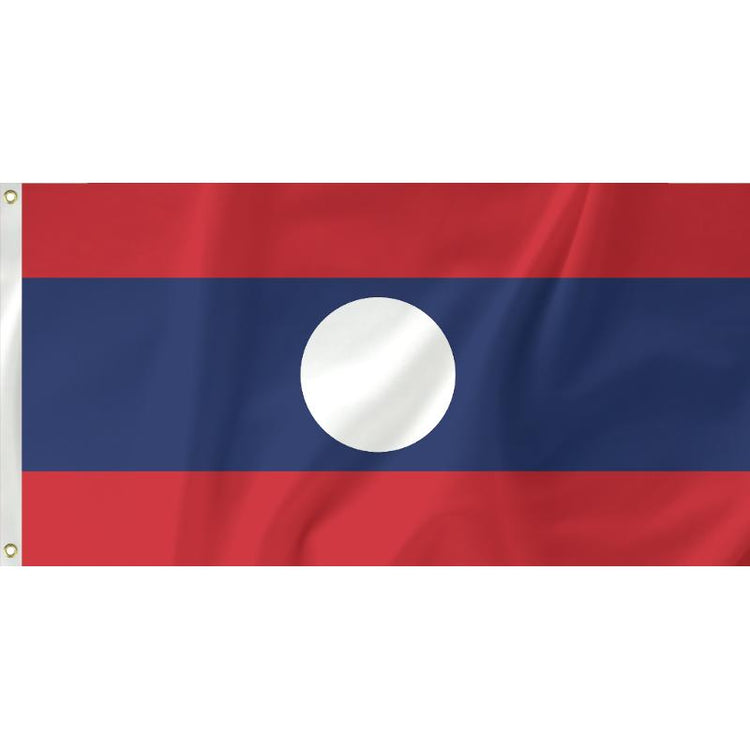 Laos' current flag was adopted in 1975 when it became a socialist state. The current design however was designed from a non-socialist background. It first came into existence by an anti-French movement at the end of World War 2. It is currently the only communist country that does not use a five-pointed star as an emblem.