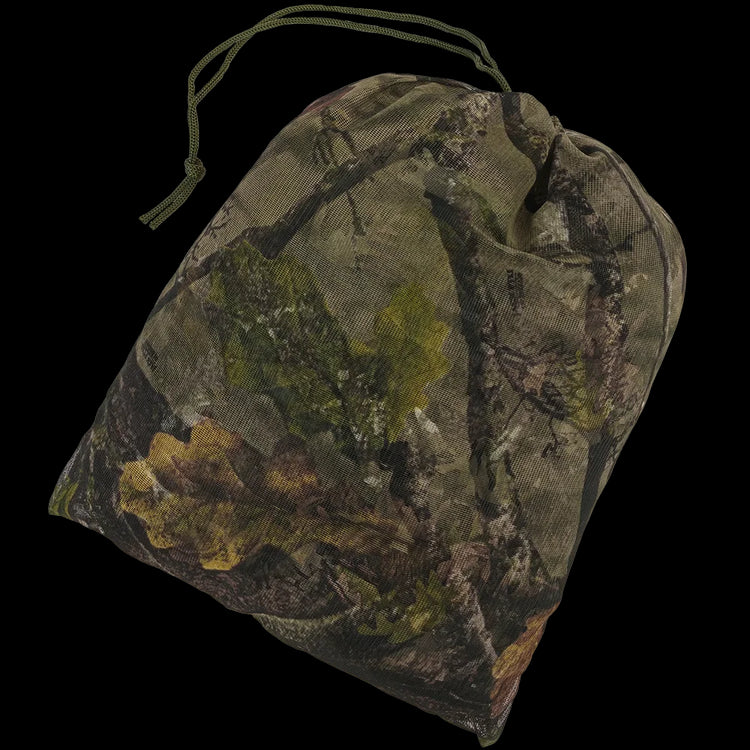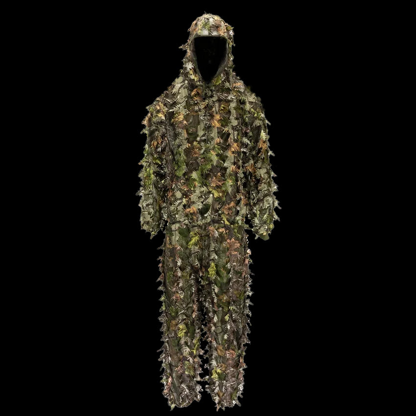 Quick and easy two piece ghillie - from Jack Pyke. These suits have leaf cutout strips and provide a good base to break up a humanoid shape trying to hide in the wild. Especially in an oak dominant forest, as this suit employs realtree-like oak patterns and colours (brown, green, greys). The base is a lightweight mesh and may take some modifications, if you wish to break your shape up further.