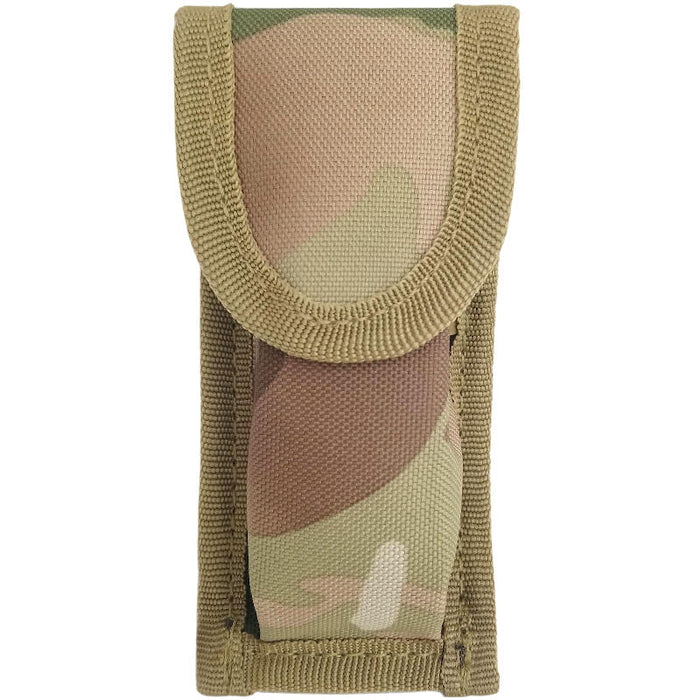 Got a torch or foldable lock knife that you need to both carry and access quickly? This wee guy is the right pouch for the job. Quick hook & loop flap access paired with a single loop on the back designed to mount on your belt.