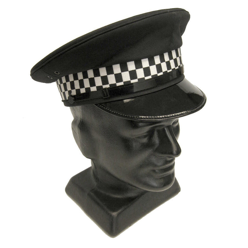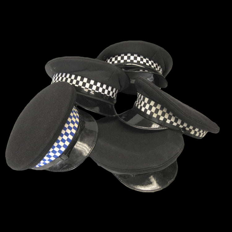These British police caps were worn by male officers and feature the iconic checkered band and flat top look. You'll be sure to stand out with this unique looking piece of headwear and is a fantastic hat for anyone interested in reenactments or fancy dress.