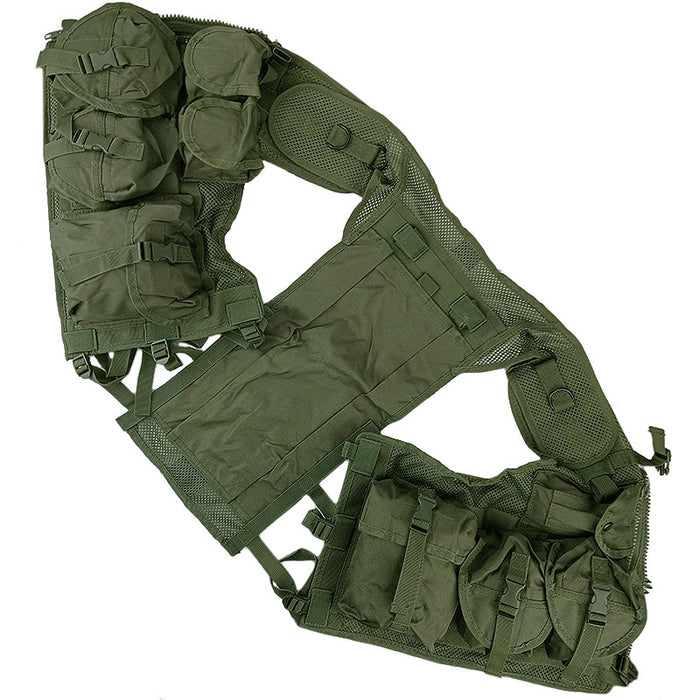 This 9 pocket combat vest from Mil-Tec is based on the British made 'Arktis 1601' battle vest. The 1601 was designed for soldiers in hot humidities, hence its mesh design. Although the pouches are stitched to the vest (meaning they can't be rearranged) they're placed in an optimum position for easy access. Mesh coverage allows for more breathability and less weight, making it perfect for long outings in hot weather.