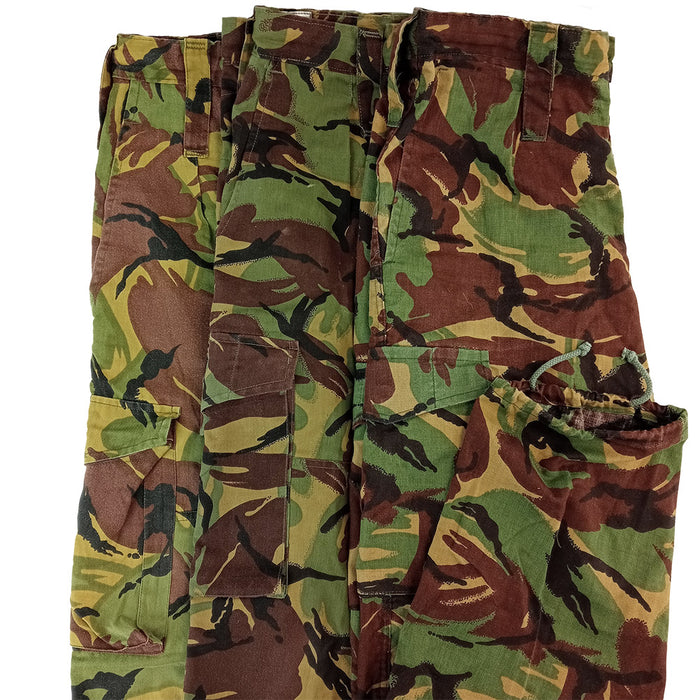 These trousers have drawstrings around the interior of the waist allow you to get a tight fit while keeping the strings out of the way. Two slash pockets and two cargo pockets give the wearer ample storage. Ankle drawstrings allow a tight fit over your boots to keep out the elements and pesky bugs. Massive 9cm (3.5inch) belt loops are great for a wide range of belts. Manufactured in New Zealand and becoming harder to find, for a small country we sure did love print and manufacturer variations. Like our other batches of NZ camo, these are a NZDPM rainbow - from the modern darker tones to brighter tropical. Some are a bit faded, full of character and still ready to roll! Complete a set, add them to your collection or don them out in the wild.