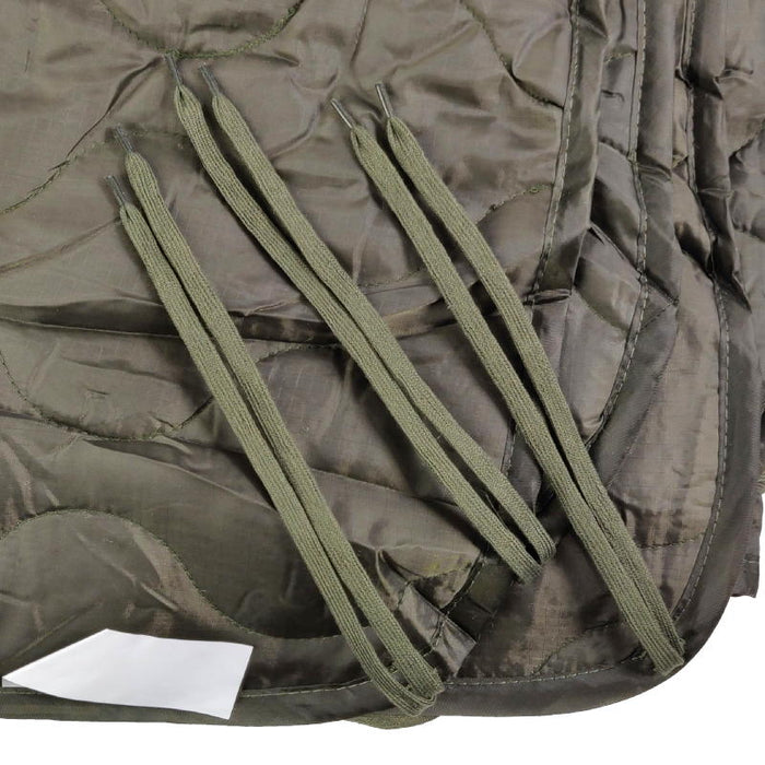 Considered by troops to be one of their most versatile pieces of equipment. The poncho liner can be used as a make-shift sleeping bag, shelter, survival blanket, camo hide or ground sheet. The eight ties - one each corner and side - allow you to attach it to a poncho or tie it to a tree for shelter. Grab yourself a woobie for a home emergency kit, camping or hiking.
