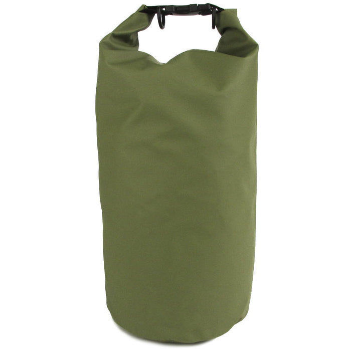 The time will come when you need to protect your essential gear and clothing from rain and water. Be prepared and pick up this waterproof bag for those wet scenarios. Constructed from a trilaminated PVC fabric for durability, abrasion resistance and most importantly, water tightness. Simply throw in your essential kit, roll down the top and then clip it together. Two D-rings around the top provide additional fastening points. This 10 litre bag could fit your essential base layers or thermals, a compact sleeping bag or electronic devices. Ideal for camping, boating, hiking and kayaking!