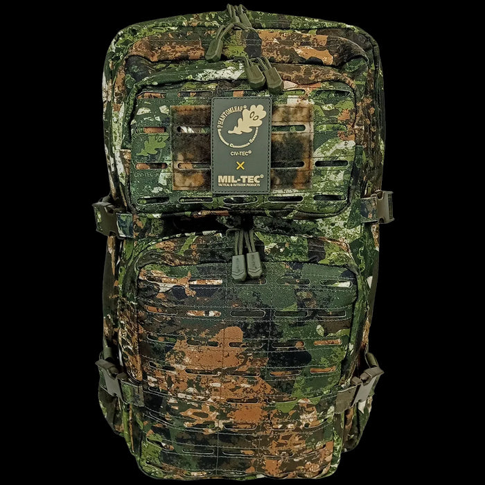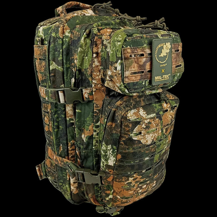 In the camouflage WASP I Z3a by Phantomleaf for Mil-Tec and in two handy sizes, these are great for short hikes, school, a lightly packed hunting trip or traveling with a load of tech like it's 2002 and you're heading to your mate's place for a LAN party. In both of these sizes, the main compartment unzips right to the bottom of the pack, allowing the bag to be unfolded and laid out flat. In addition, these have an ample sized middle pocket and two accessible front pockets. The shoulder straps are padded with a waist strap available to relieve some weight on heavy loads.