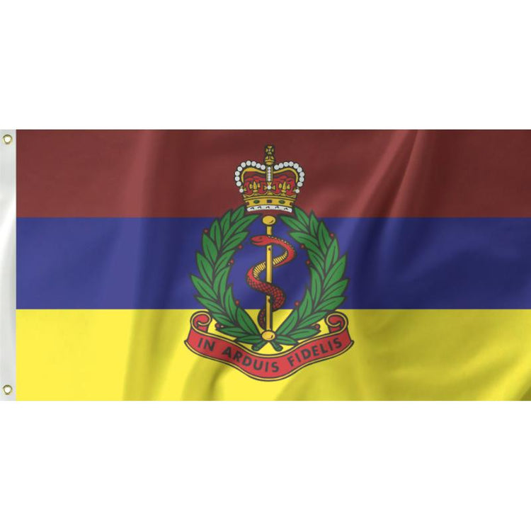 Show your support for the Royal Army Medical Corps with this distinctive flag. Completed with metal eyelets on the left side to attach to flag poles . Measuring 155cm x 90cm it will fit nicely in your house or workplace. Show your dedication and pick up a flag today!