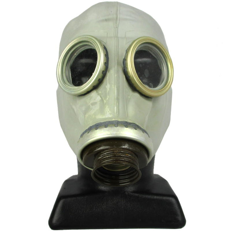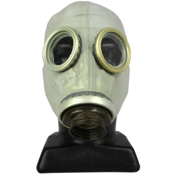 The ShM-62 or more commonly known as the 'GP-5' due to its counterpart filter being produced in the millions from 1962 until 1990. The mask was produced primarily for the Cold War and intended for use with the civilian population. Unlike modern masks with adjustable straps, these are made from a soft rubber that stretches to fit over your head and make a snug seal.