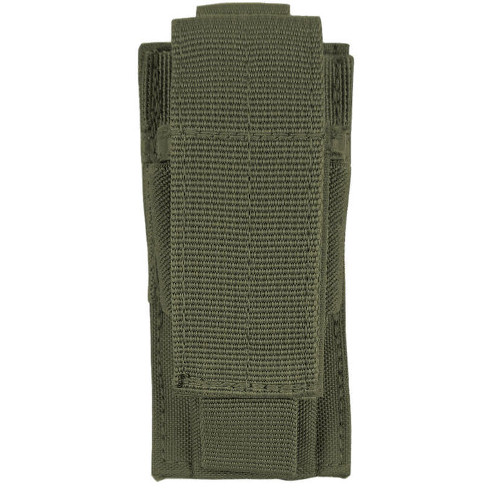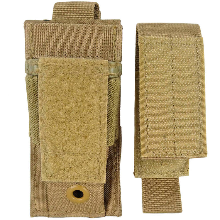 An old trusted pouch design to hold a single pistol magazine. With a single tab on the back you can snap these onto any MOLLE surface. The pouch has a awesome hidden feature - you can detach the cover and adjust the retention height. So if your running any extended mags and your normal fixed height pouches won't fit them - these should!
