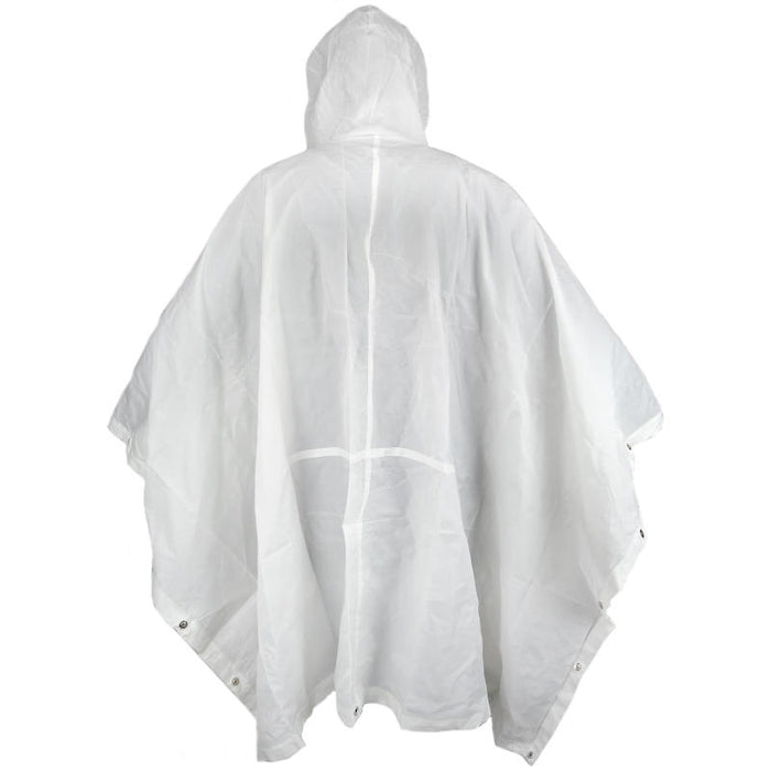 The sides of the poncho are lined with snap domes so you can adjust it to fit your arms through. An added bonus is each corner has a eyelet (and one midway at each 'arm' hole) so you can use it as a temporary shelter - handy! The poncho also has inbuilt hood with adjustable draw strings and a snap dome neck to keep the wind at bay.