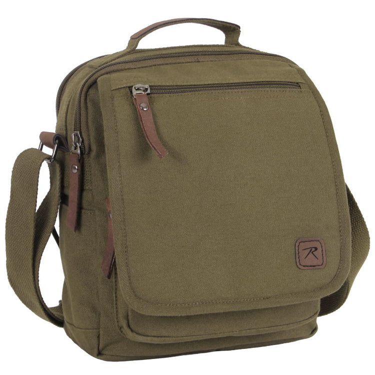 Stay organised while you're on the go with this shoulder bag, perfect for work and everyday use. A canvas construction with leather tabs and metal zips gives this bag a vintage military appearance. Sling it over your shoulder or carry it by the top handle to conveniently transport your days worth of goods.