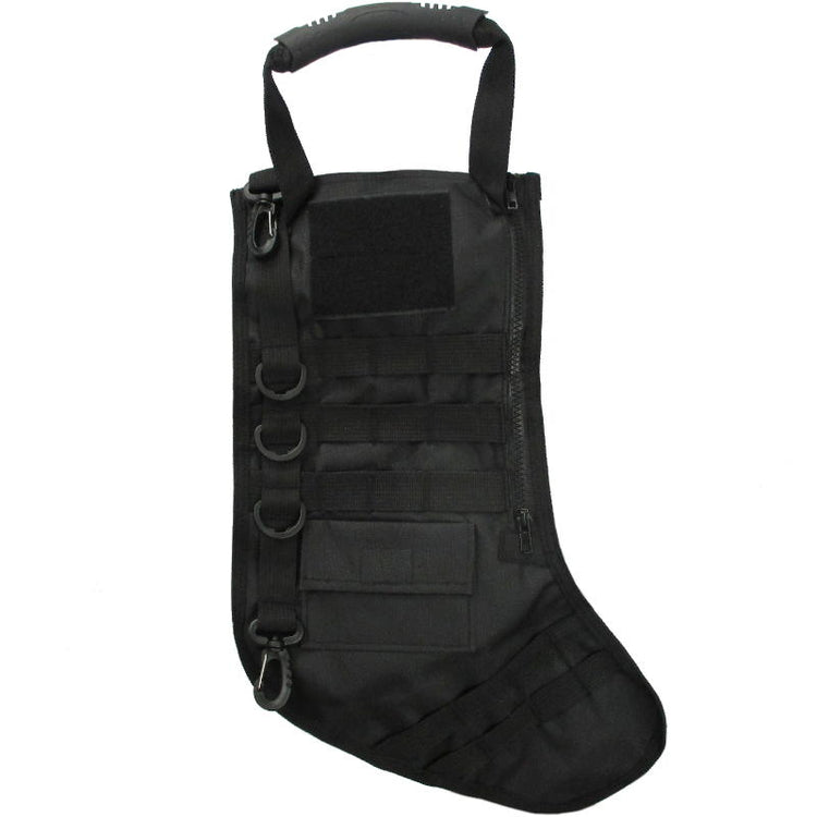 Are you or one of your loved ones an absolute tactical fanatic? Treat them this Christmas with a tactical stocking! With plenty of room to stuff tactical goodness inside, the outside is much the same. With multiple strips you can attach any MOLLE pouches and the kitchen sink if you need too. A carry handle, two rotating clips and multiple D-rings provides plenty of options for mounting above the fireplace or tree. The finishing touch is the hook & loop area - buy one for each family member and slap on their favourite morale patch so they will know it is theirs!