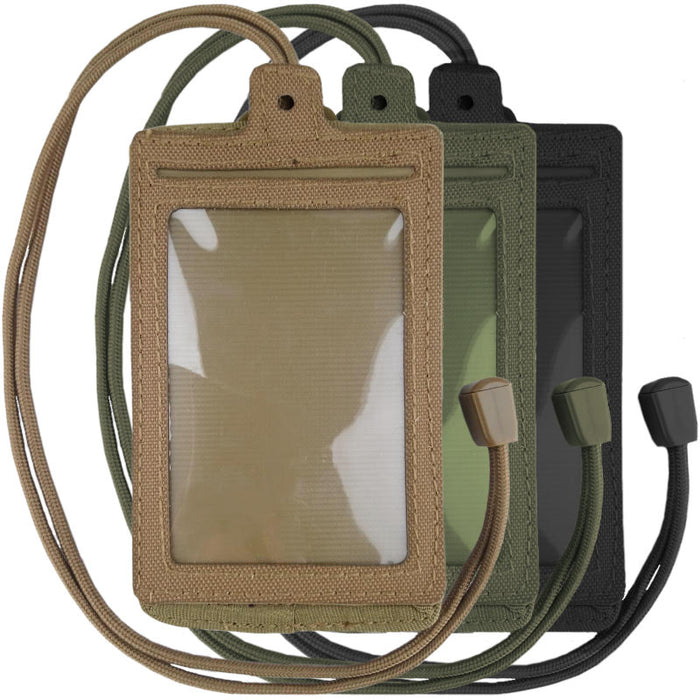 Whether you work security, roadie crew or attend large conventions for your work, these ID card holders are ideal. These have a nice big clear plastic window where you can insert any identification cards. Designed to be worn around your neck with a lanyard, they sit nicely on your chest remaining visible to those around you. The front window can peel off to reveal a large hook & loop surface which you can attach patches onto. On the rear panel is an elastic pen loop, 3 separate card slots and strap to secure them.
