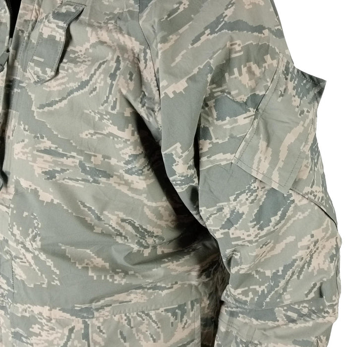 For the Marine Corps and Air Force, the All Purpose Environmental Clothing System (APECS) is the successor to Layer 4 of Generation II of the Extended Cold Weather Clothing System (ECWCS). APECS is a 3rd generation outer garment set (parka & trousers) that reduces noise and weight, increases IR and environmental protection, and incorporates the MARPAT (Marine Pattern) camouflage or in this case the USAF ABU "Digital Tiger Stripe" pattern.