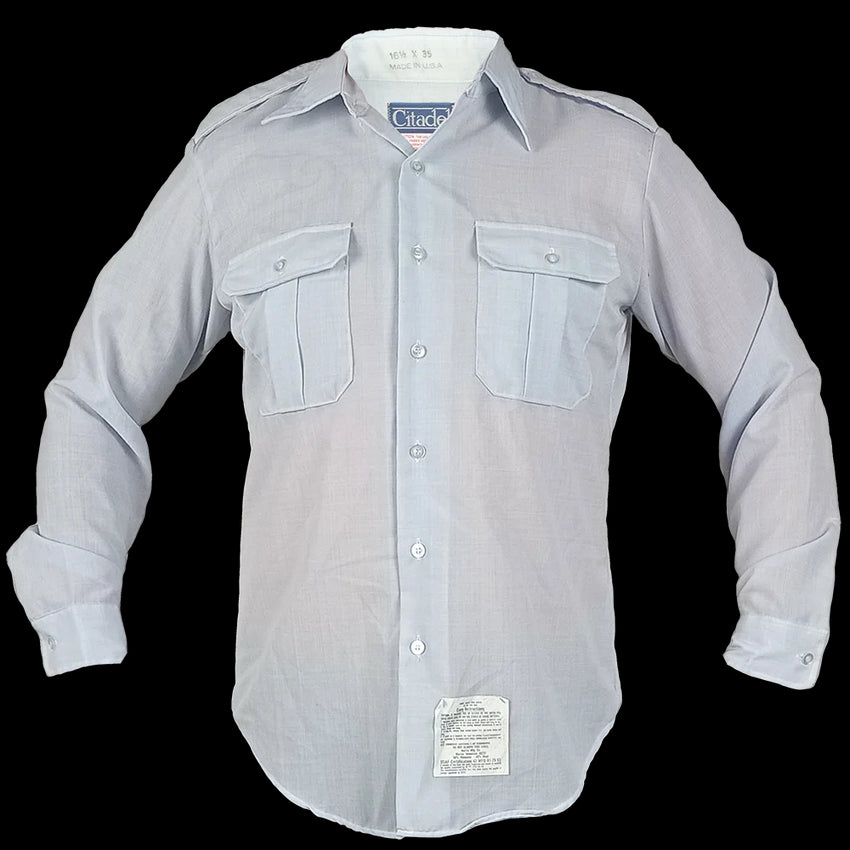 This US Air Force Blue dress shirt features a long-sleeve, button-up design tailored for more formal military occasions. Crafted to meet uniform standards, it offers a sharp, professional appearance while ensuring comfort and durability throughout extended wear.