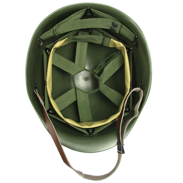 The steel shell comes with a lightweight plastic liner that features an adjustable suspension system and chin strap (reproduction). With the addition of the woodland camouflage cover, you'll have a complete, functioning M1 setup. Perfect for reenactments and military enthusiasts.