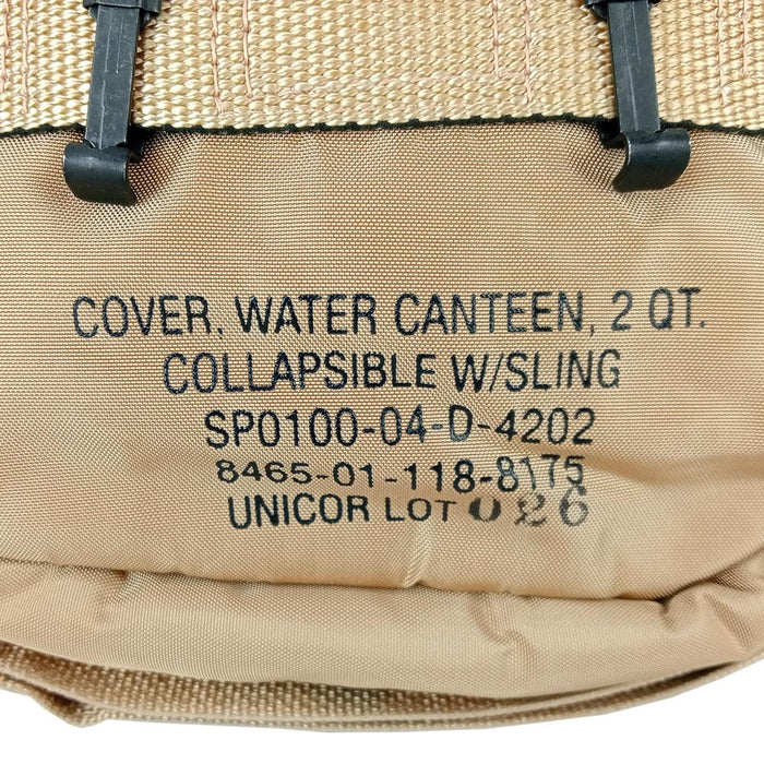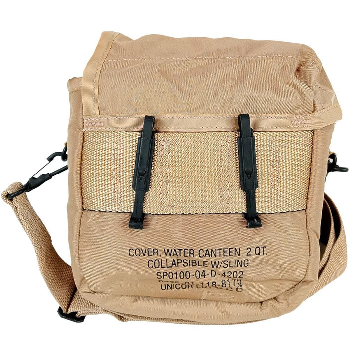 These genuine US Army covers were designed to carry the US 2 quart collapsible canteens. The cover is insulated with fleece and features a quick release buckle for securing in a canteen. ALICE clips on the back allow the cover to be attached to any compatible belts or load bearing gear. Alternatively, use the shoulder strap to carry your water around. To top it off, there is a small pocket on the front for storing water purification tablets.
