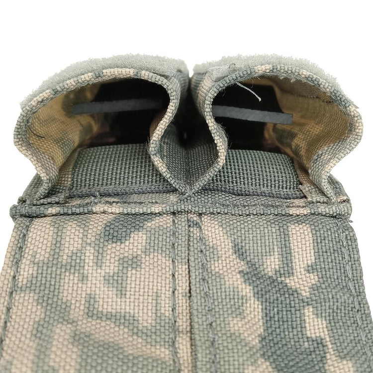 Whatever your '9' is - its no good without pouches for spare mags! The US Air Force issued these primarily to its security forces. With its unique 'digital tiger stripe' pattern, they definitely have a striking look to them. These pouches have a hard Kydex insert so they can retain your mags and enable the fastest reloads. You can run these pouches without using the top flap - the top flap is more used for airborne operations as extra insurance you don't lose something in a rotor blade. The back has MOLLE enabling this pouch to be attached to any modern tactical surface.