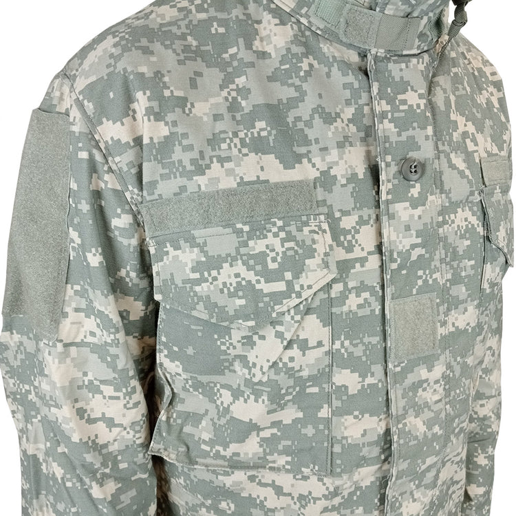Constructed from a Cotton/Nylon twill, and featuring a hook & loop neck closure, snap up storm flap and drawstrings at the hem and in the hood. Add our removable liner to keep you warm and comfortable no matter the weather (sold separately). All complete in that dangerously atrocious Universal Camouflage Pattern (UCP) camouflage. Get yourself one of the most generationally confused bits of military surplus the industrial complex has ever churned out today!