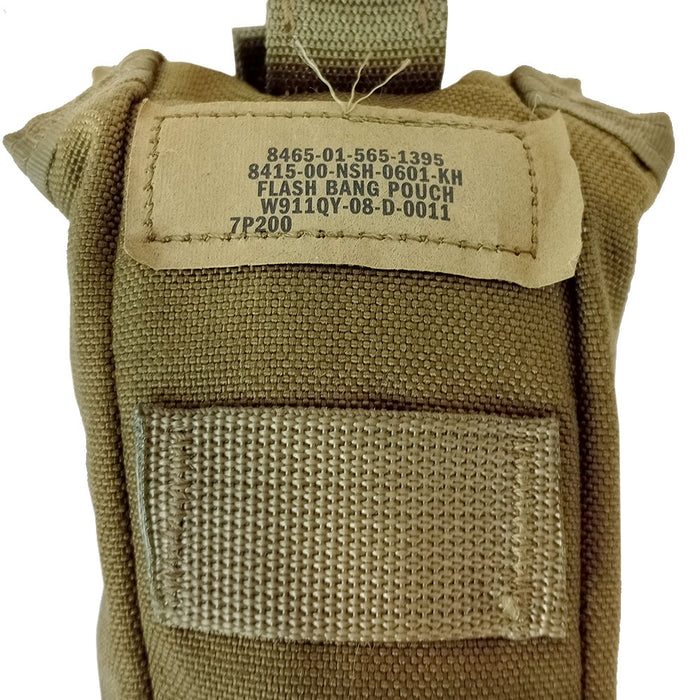 Although the 'flash-bang' goes back further than the GWOT (Global War On Terror) with mostly special forces, it has worked its way into all facets of modern militaries. These pouches are what was made to carry flashbangs over the transitional period of 3 colour desert over to UCP uniforms. You can often still find khaki pouches still in use with Multicam in the US military where there are shortages.