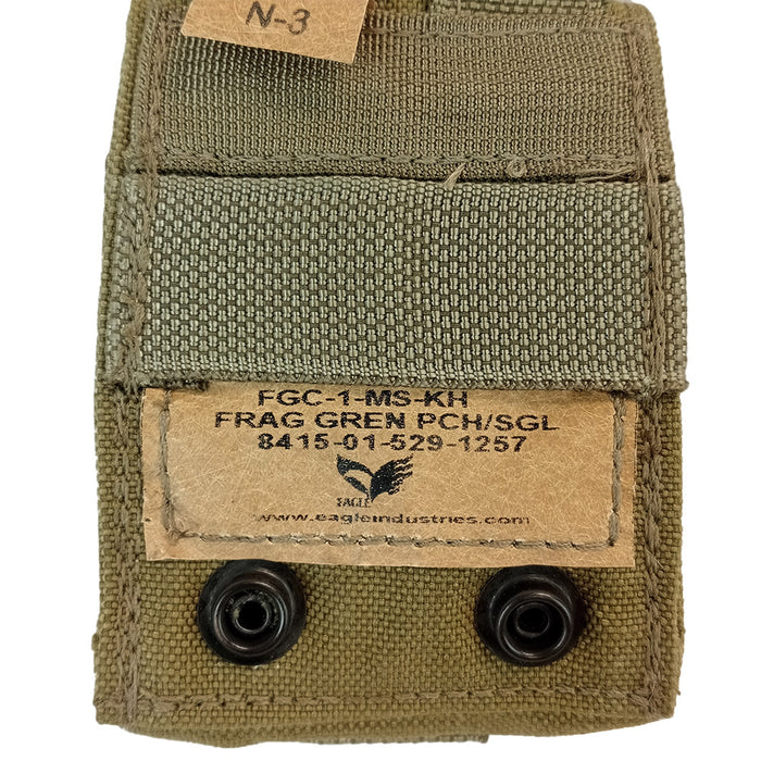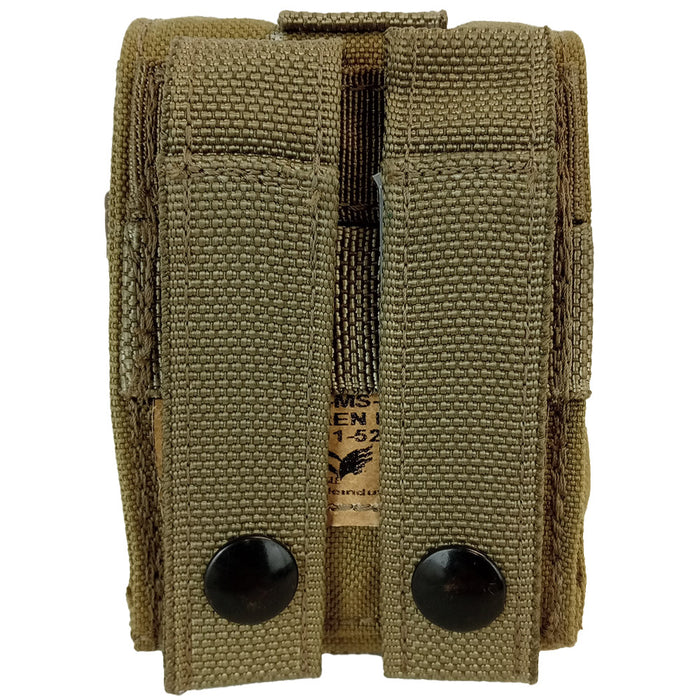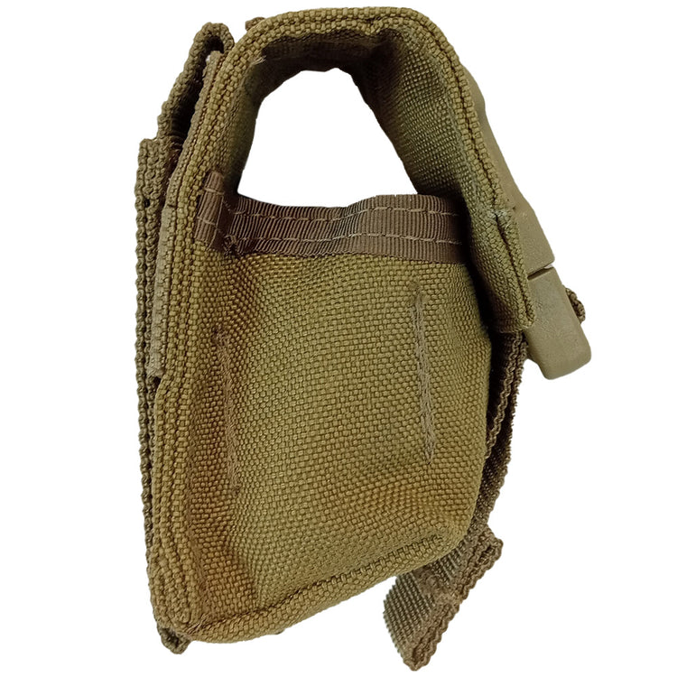 These grenade pouches are genuine surplus from the US military. Manufactured by various government contractors using tough Cordura nylon. Designed to hold a fragmentation grenade on a MOLLE combat vest and other MOLLE compatible gear. Pick up one or two for your khaki paintball or airsoft setup. Or re-purpose a pouch to hold your everyday carry around your belt.