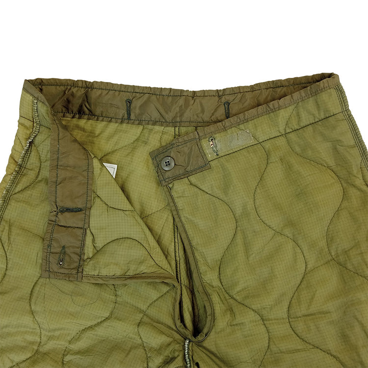 Like a woobie for your legs, these liners have a quilted construction, sandwiching a polyester filling between a nylon outer. The knees have a pleated design for comfortable movement and the crotch is unfastened - maybe not great for wearing stand alone like the jacket liners. These trouser liners are designed to button into US M65 Cold Weather Trousers so check if your M65's have buttons in the interior waist or get crafty and attach these liners to your go-to winter pantaloons.