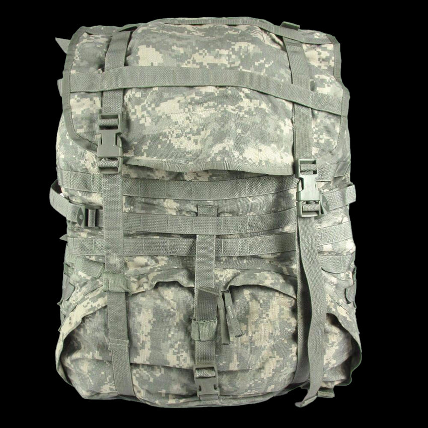 Ye olde Equipment MOLLE II Rucksack, Large. These big fellas have had a rumble helping the boys on Turtle Island lug their gear around. So much of a rumble, some have lost straps, gained some extra holes or lost some components. These should contain the frame, rucksack, shoulder straps and waist belt, all in varying conditions.