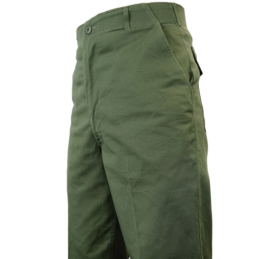 These are a pretty straight forward uniform - 2 slash pockets with 2 buttoned rear pockets. A 4cm wide set of belt loops are provided with a zip up fly and button waist. The bottom of the legs have no drawcords or anything fancy - soldiers would have these tucked into their boots. There really isn't much more to them than that. Just pure utilitarian, rugged ol' surplus. Ideal for all walks of life whether you are beating the pavement, camping, hiking, hunting or pewing some airsoft.