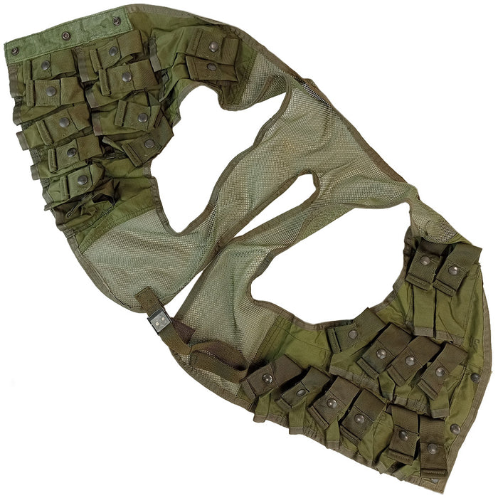 The Vietnam War bought in a whole new war to launch grenades at the enemy in the form of the standalone M79 or the rifle mounted M203 launcher. It was common to have a man in a section as a grenadier toting nothing but a 'thumper' and dozens of different 40mm grenades. There were bandoliers at the time but these weren't ideal to draw from in a hurry let alone the snagging in the bush they could cause. Eventually the military designed and started pumping out vests closer to the end of the conflict. This particular model (OG-106) was a refined version that came out in 1974 and basically didn't see action in that War. It did see extensive use through the 80s and could still be found with lesser equipped US units during the 2003 invasion of Iraq!