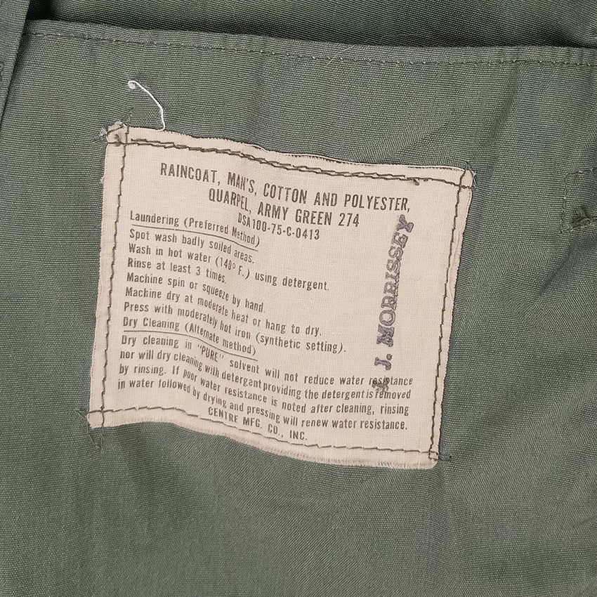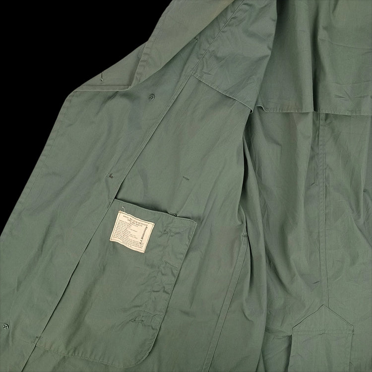Similar to the US all weather coats, these vintage wind and water resistant coats date from around the end or tail end of the Vietnam war. Once treated with Quarpel, these may need refreshing with another water proofing agent, given their age.