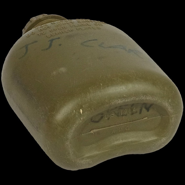 Back in 'Nam, you might have had one of these to keep you hydrated. The stock standard, humble US 1 quart (~0.946 L) plastic canteen, but these are Vietnam era! The dates of these are on the bottom.