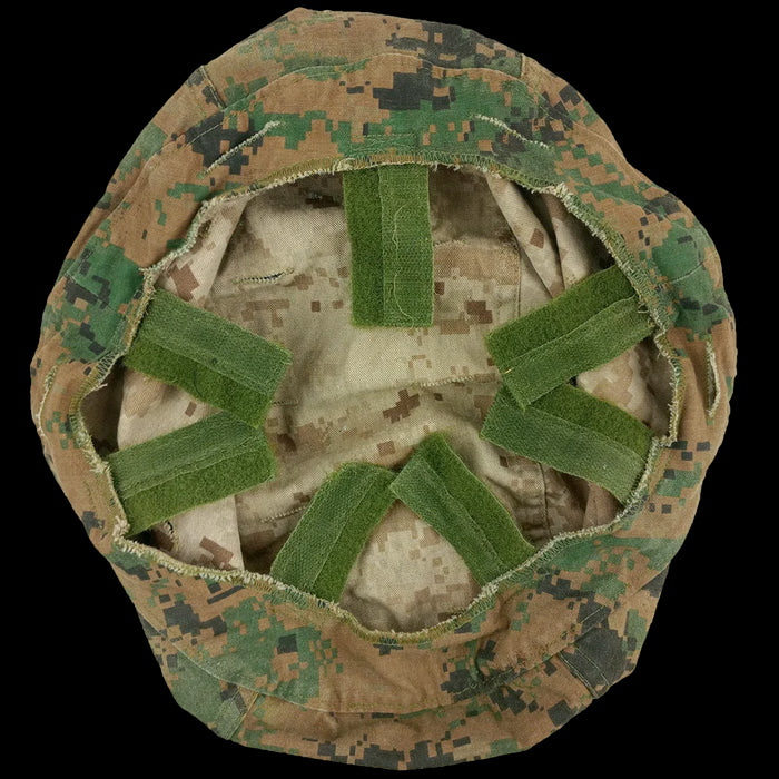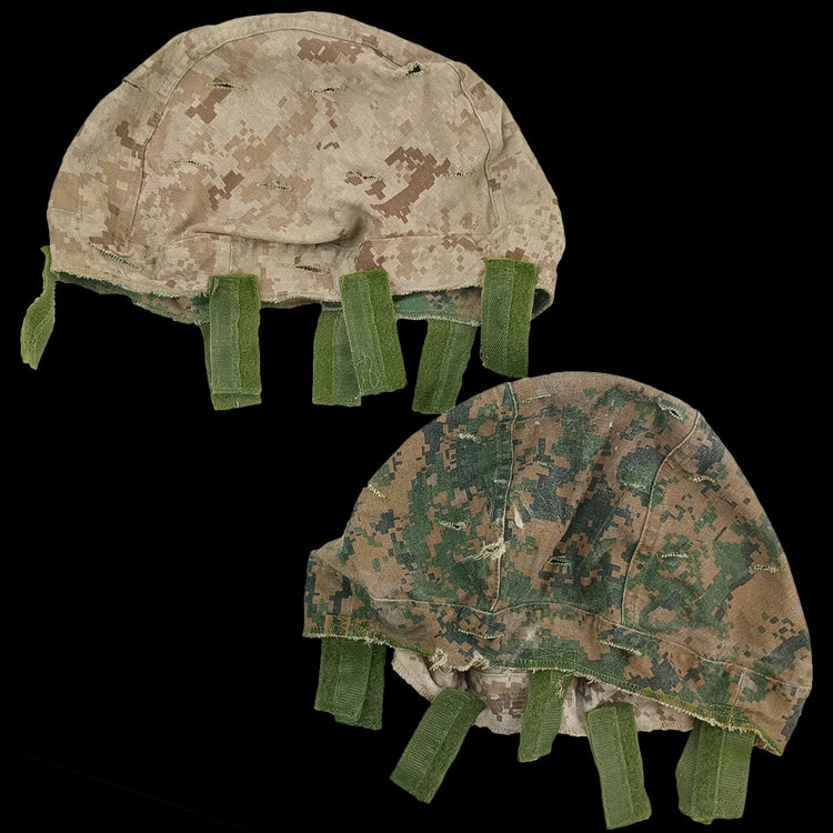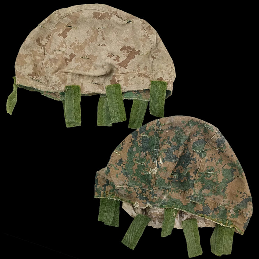 These helmet covers may be ''well used'' (a bit rough - may have small holes, frayed edges and/or fading) but they are neat - featuring a reversible design, so you can have both Marine Patterns! Keep that noggin hidden in woodland or desert environments, yay!