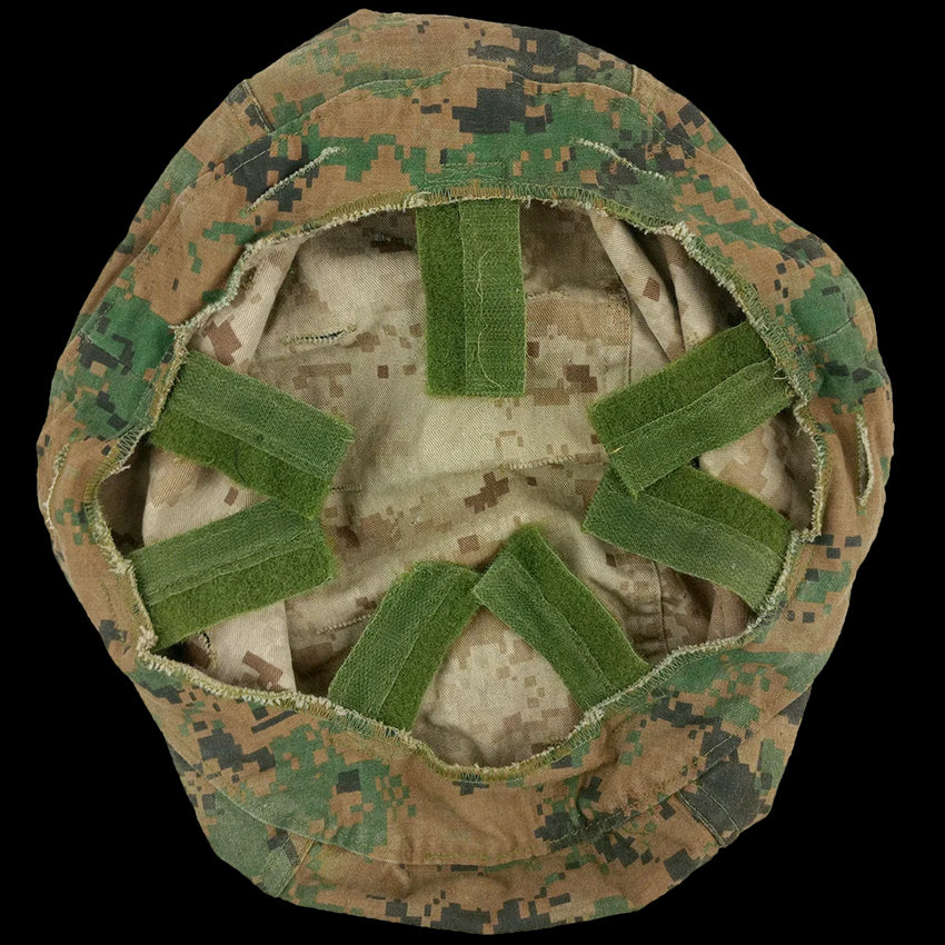 The covers are suitable for use with PASGT, LWH, or similar helmets with a pad system (the one pictured is over a replica MICH). Seven hook & loop tabs attach the cover to the helmets inner liner for a secure fit.